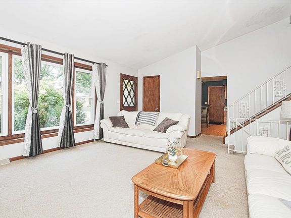 This spacious split-level home located in the popular Century Oaks neighborhood. As you step inside, the vaulted ceiling makes the living room feel spacious and inviting with big windows bringing lots of natural light into the home. The living room is carpeted, and hardwood floors are beneath the carpet. The kitchen and dining area are combined, perfect for informal gatherings with friends and family. Maple cabinets and stainless-steel appliances are featured in this contemporary kitchen. The attached garage conveniently enters into the kitchen. Moving to the upper level, there are three bedrooms and one full bathroom. Elegant hardwood floors are in the second and third bedroom. The master bedroom and second floor hallway are carpeted, but hardwood floors can be found under the carpet. The family room is on the lower level, offering a quiet space to watch a movie or game. This inviting room features a brick fireplace, ready for those cool evenings at home. Sliding patio doors lead from the family room to the large deck. The laundry room and powder room are also on this level. This home offers a really big back yard and mature trees. Nearby Tyler Creek Forest Preserve offers bike and hiking trails. Close to the Big Timber Metra Station. The north Elgin location makes for easy access to I90. Improvements include: 2024 Microwave | 2023 Dishwasher | 2022 Range/Oven | 2021 Furnace, Central Air Conditioner, Humidifier, Smart Thermostat | 2016 Windows. Quick close possible.
