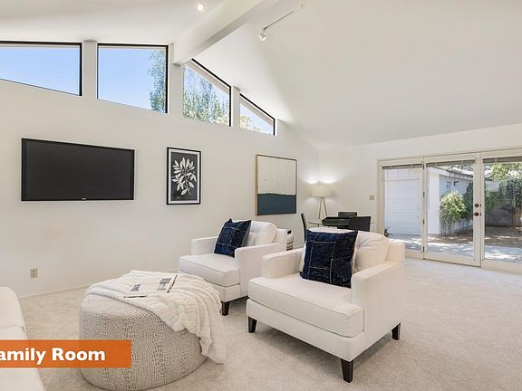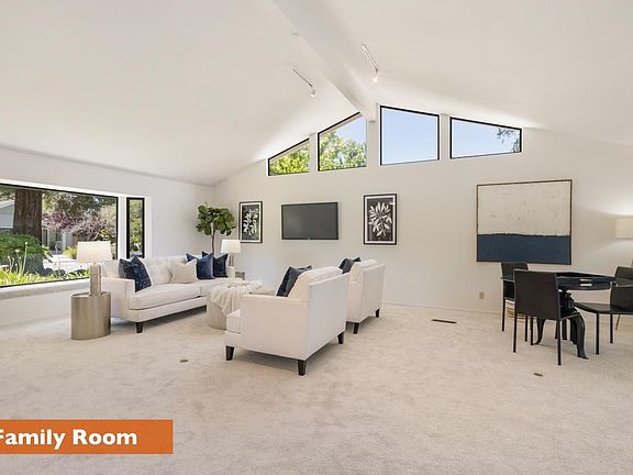 What I love about this prime Los Altos Highlands retreat is its classic aesthetic plus a big and bright family room (with its soaring ceiling) that's adjacent to the kitchen and flows into the dining room. There's also a separate living room, with a vaulted ceiling, too. This house is ready for you to make your home. The massive ¼+ acre lot has a large backyard that feels like a private park with multiple entertainment and play areas with a new lush lawn.