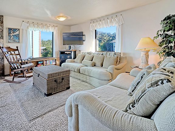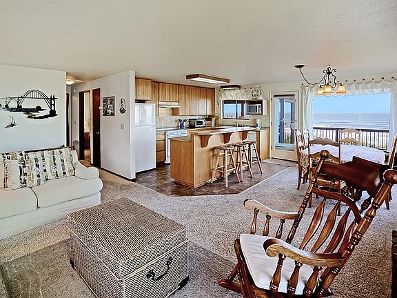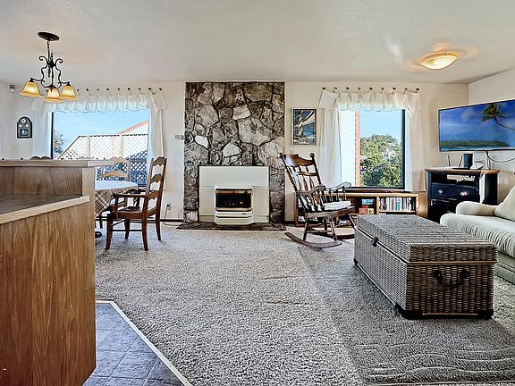 Catch the rays of the setting sun in this oceanfront home on the Oregon Coast which features a cozy and comfortable sunroom. Central location in the City of Newport, north of the quaint Nye Beach commercial district and south of Agate Beach. Split level home with great room, sunroom, deck and laundry on the main level. Home features two primary bedrooms, one on each level. Lower level bedroom has access to a patio area. Garage is currently being used as a game room and a multi-purpose room used for sleeping. Beach access is less than a block to the north. Move in ready, home is being sold furnished. Note: property is located outside City Short Term Rental zone. Enjoy views of surf, sunsets and peak of the Yaquina Head lighthouse!