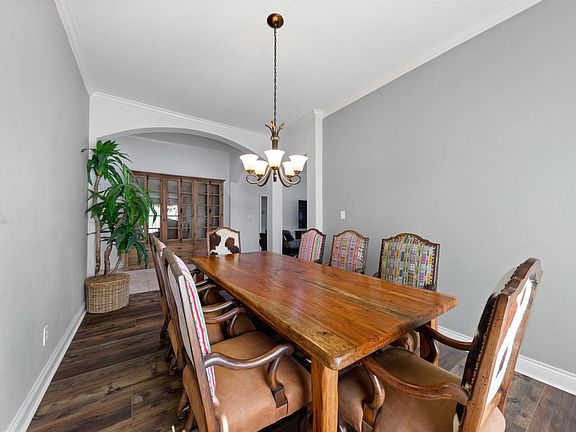 Stunning 4-bed, 2-bath home combines modern comfort with timeless style. Step inside to high ceilings and expansive windows that fill the living areas w/ natural light. Beautiful tile and luxury vinyl plank flooring flow throughout, creating a bright and welcoming atmosphere. The chef’s kitchen is designed for both everyday living and entertaining, featuring a huge center island w/ sink, granite countertops, and stainless steel appliances. It seamlessly connects to the dining and living areas for effortless gatherings. The spacious primary suite offers room to relax, plus an ensuite bath w/ dual vanities, separate shower, and soaking tub. Secondary bedrooms are generously sized, providing flexibility for guests, an office, or hobbies. Step outside to a private backyard oasis w/ a sparkling pool, fully fenced for privacy and ready for summer fun or quiet evenings at home. Conveniently located near schools, shopping, dining, and major highways, this home delivers comfort and convenience.