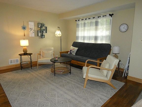 Darling 2 bedroom home located on a tree lined culdesac close to downtown, shopping and schools. Home has freshly refinished hardwood floors in living and bedrooms. Kitchen has been updated with new paint, flooring and appliances. Living room has large picture window for natural lighting. Bathroom has been completely redone. full basement with partial rec room and laundry area. Large inviting deck off the rear of the home for just relaxing. Detached garage is oversized for lots of storage.