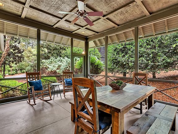 Charming Orchard Cottage in Village area of The Reserve at Lake Keowee. Designed by acclaimed Architect Keith Summerour and walking distance to all the available amenities in the community. Presenting a unique opportunity to own a one of the largest Orchard Cottages. This 5 bedroom, 5 ½ bath home has 3,023 sq ft of heated living space. This home is designed to offer larger living, dining, and outdoor spaces perfect for gatherings and family life. The great room and dining area feature stunning reclaimed barn wood wainscoting, adding a touch of rustic elegance. A solid masonry two-sided fireplace serves as a focal point, providing warmth and ambiance to both living spaces. Beadboard pine ceilings and heart pine flooring throughout, creates a cozy, inviting atmosphere. The galley kitchen is designed for efficiency and convenience open to great room and dining areas. This home features 2 spacious master suites on the main level with complimenting large full baths. On the upper level a versatile bunk room and ample attic storage for all your needs. The newly installed DaVinci roof ensures durability and longevity. The lower level features a finished den complete with a wet bar, ideal for entertaining. The property is nestled among mountain laurel and rhododendron, offering privacy and a serene natural backdrop. An outdoor storage area includes ample space for a golf cart. Enjoy close proximity to the Orchard House, golf, pool & market. Experience the charm and character of Orchard Cottages . This property has a Full Membership and can remain at that level, or downgraded to Sports or Social membership.