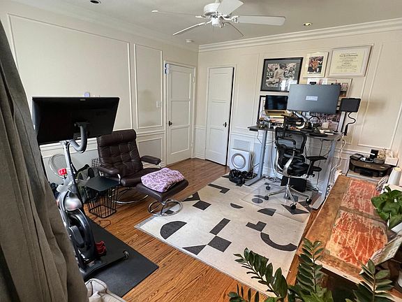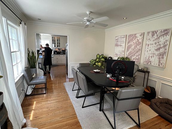 Beautiful wainscoting and crown molding throughout, stunning hardwood floors, and tons of windows! Excellent light; plants thrive in this unit!