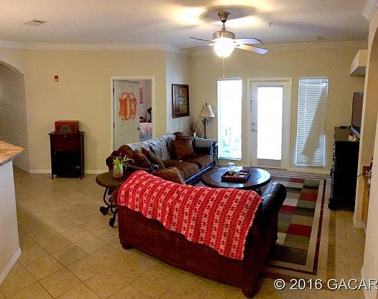 **Under Contract - Backup offers accepted** EXTRAORIDNARY LOCATION ACROSS THE STREET FROM UF!! Convenient downstairs unit with one assigned parking space. This well maintained condo features 3 bedrooms each with a private bath. Enjoy the spacious open floor plan with 9' ceilings, crown molding, raised panel wood cabinets, a private laundry room, private patio and walking distance to UF, Shands and Sorority Row.
