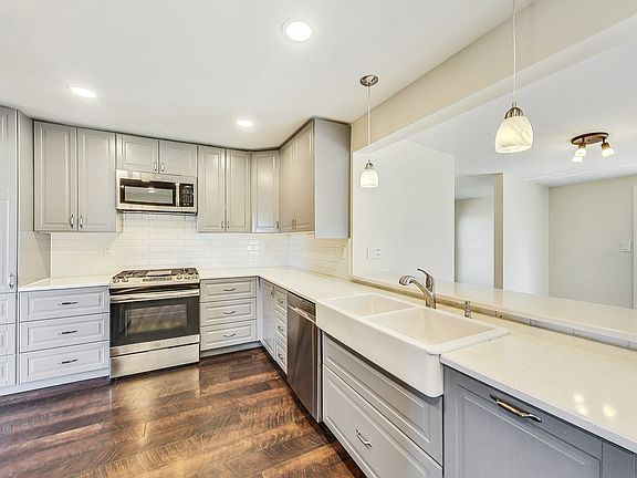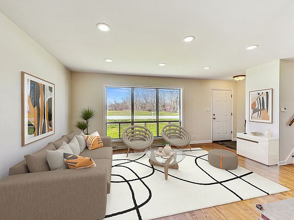 Inviting 4-bedroom, 2.1-bath split level single-family residence in East Northbrook, showcasing award winning district 28/225 (Meadowbrook elem, Northbrook Jr high, Glenbrook North High) schools. Step into a welcoming ambiance highlighted by a charming brick wood-burning fireplace in the sophisticated formal living room, accentuated by abundant natural light and recessed lighting throughout. Fully remodeled kitchen, featuring upscale GE appliances, a double farmhouse sink, beveled quartz countertops, a 5-burner stove with a flat top, custom under-cabinet LED lighting, and convenient soft-close cabinets with built-in and pull-out drawers, alongside a vented micro hood. Entertain seamlessly in the spacious dining room, offering French doors leading to the expansive private deck embraced by mature trees. The lower level boasts a versatile layout with the 4th bedroom, a full bath, laundry room, and a sizable family room. Upstairs, hardwood floors adorn the 3 bedrooms with ample closets and a final full bath. Outside, relish in the rear concrete patio and an additional covered patio, ideal for year-round gatherings. A substantial side yard presents opportunities for customization, currently housing two vegetable gardens. Completing this offering is a large covered patio and a 2-car detached garage. View the 3D tour to walk through this property!