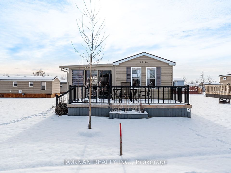 DESIRABLE PHASE 1. ACROSS FROM THE LAKE. PRICED TO SELL & NO HST! Welcome to Bellmere Winds Golf Resort on Rice Lake - your opportunity to purchase this spectacular 3-bedroom 2014 Northlander Spruce 3-season home in the park's desirable PHASE 1 located just a stone's throw from the lake. Park fee's include SIX ANNUAL GOLF MEMBERSHIPS amongst a plethora of other phenomenal amenities such as private beach access, multi sports court, inground pool, gym, motor boat rentals, paddle board & kayak rentals, wifi hot-spot, park events & so much more! This lot & unit are the envy of the park - with a spacious sunroom addition, covered porch & two walk-outs. Summer 2026 is just around the corner, don't miss this amazing opportunity! *** Street: Lawson, Unit 4 ***