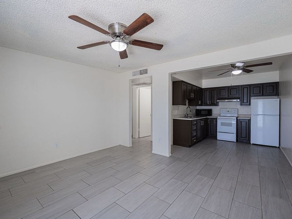 Single level two bedroom, one bath. Featuring tile flooring throughout, ceiling fans, fresh paint, tile tub surround and beautiful kitchen appliances, cabinetry and counter tops. New big front yard renovation. Enclosed, "your own privacy" front door security camera, community laundry room and assigned 2 parking spaces. Surrounded nearby groceries store, restaurants and schools and ASU. Manage by owner.