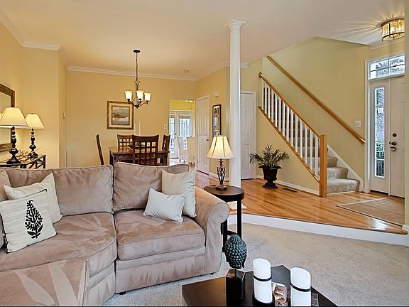 3 BR, 3 1/2 BA end unit TH.Open plan LR adjoins DR with new wd floors.Kitchen w/flex family/breakfast rm,new granite counters,SS app,French doors to lg deck for entertaining w/water views.Owner's suite w/custom walk-in CL and MBA.Fully fin walkout lower level rec rm w/FP.Bike/jog paths,min to comm pool,shopping, restaurants. Coming in 2013 min to Wiehle Metro!