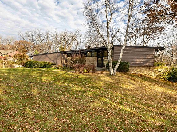 Experience timeless architectural design in this stunning Frank Lloyd Wright–inspired residence nestled on 1.49 serene acres in Barony Woods. This multi-level home showcases a dramatic floor-to-ceiling limestone fireplace, expansive wall of windows, and a seamless connection between indoor and outdoor living. Featuring 3 spacious bedrooms, 3 full baths, and an oversized 2-car garage, this home offers both comfort and sophistication. Natural light fills the home, highlighting the craftsmanship, warm wood tones, and custom details throughout. Enjoy year-round relaxation in the beautiful four-seasons room, surrounded by nature and bathed in natural light. A true architectural gem perfect for those who appreciate design, nature, and style.