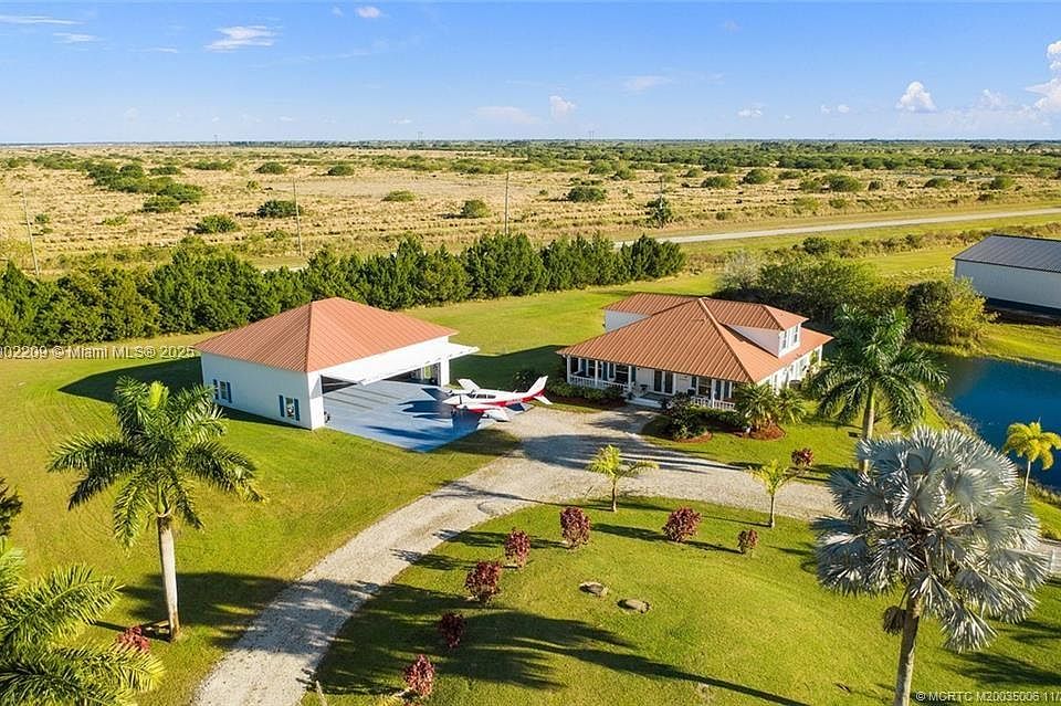 Treasure Coast Airpark (FL37) boasts one of South Florida’s longest private hard-surfaced runways a newly paved 4,061-ft asphalt strip designed for aircraft up to 12,500 lbs. This 2.8-acre aviation estate includes a 46’ x 38’ hangar with a hydro-swing remote door, aviation fuel tank, and parking for up to 14 cars, with additional space to build another hangar. Zoned AG-5 and bordering McCarty Ranch, it’s also ideal for equestrian use. The custom Key West–style two-story home features 3 bedrooms, 2 bathrooms, a charming front porch, and direct runway views. Inside, enjoy an open floor plan with 18-foot cathedral ceilings and a spiral staircase leading to the upstairs bedroom the perfect blend of aviation living and Florida lifestyle.