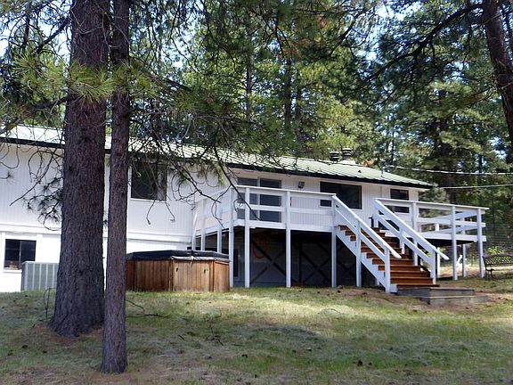 Gorgeous 5 acre horse property/hobby ranch. Home recendtly renovated (kitchen, bathrooms, flooring, int/ext painted) with 4 bedrooms (2 en suites) 3 baths. Basement has a en suite, bathroom and family room, Heat pump with A/C, pellet stove. Monitor heater. Large attached 2 car garage, separate office/gym(16x20). 30x66 18-gauge steel Quonset Shop on concrete slab in excellent condition. 35x61 three stall barn with paddocks, room for 6 dog kennels or storage, tack room, small outdoor riding ring. 17x19 hay storage building. Excellent well with sparkling sweet water. Perimeter fencing, backs up to Forest Service land with miles of trails for recreational horse/bike riding. Within 2-3 miles of school, library, post office, convenience store. Keno features over 300 sunny days per year, great for those considering solar.