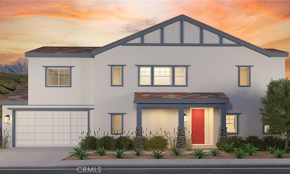 NEW HOME COMMUNITY now open. Purchase in the very 1st phase at the Community of Artisan with est. 60 day move-ins, located in the breathtaking city of Yucaipa, known as the “Jewel of the Inland Empire” and visually framed by the breathtaking San Bernardino Mountains. Energy-efficient SOLAR INCLUDED in price, this 4 Bedroom plus Loft, 3 Bath and 2 car garage single dwelling home boasts a Craftsman exterior and includes many upgrades; water resistant, hard surface, RevWood flooring on the entire first floor (with the exception of downstairs carpeted bedroom), Large kitchen island including bar seating and 2 pendant light pre-wire. Walk-In Pantry and under cabinet lighting in kitchen. Granite kitchen countertops, Stainless steel LG appliance package with free standing gas range, 5 burners and built -in Air Fryer, microwave and dishwasher and single basin stainless-steel sink. Open Floor Plan with recessed lighting in kitchen, dining area & Great Room and upgraded flat panel connects ready for your big screen televisions in both the Great Room and upstairs Loft. Primary Suites with walk in closet, lush carpet, 36" high custom designed White thermo-foil cabinets and glacier white eStone countertops, fiberglass shower with seat and glass shower enclosure, dual sinks with Peerless single lever chrome faucets, and oversized vanity mirror and tiled floors. Whole house Wi-Fi with upgraded long range access points installed on both levels of home, superior Milgard windows, upstairs Laundry Room with ample cabinet storage and upgraded Laundry Room Sink, Voluminous 9' ceilings throughout, White thermo-foil cabinets throughout home, Drop Zones with USB charging stations. Finished 2-car garages with steel roll up garage door and Wi-Fi garage door opener, rear and side yard vinyl and block wall fencing, mini Cul de sac location, close to sizeable community park with picnic areas, benches and barbecues, a cornhole court, turf area for open play, & tot lot. Professionally landscaped community with included water efficient front yard landscaping with automatic sprinklers. Wi-Fi programmable thermostat & Tankless Water Heater. Minutes to 10 Freeway, close to schools, shopping, churches, Crafton Hills College and Yucaipa Regional Park. Yucaipa is adjacent to the many wonders of Oak Glen; including apple orchards & museums. 15 minutes to Loma Linda University Hospital. Photographs are of the Plan 3 Model Home. Exterior and Interior colors and finishes may vary.
