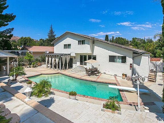 Welcome to this immaculate North of Rinaldi Granada Hills home. This home is an entertainer's dream with remodeling completed in 2008. Grand entrance with travertine flooring opens up to the bright and spacious living room with 15' high ceilings, spotless flooring, family room with fireplace. There is a separate bedroom and a guest bathroom downstairs. Upstairs, you can enjoy grand master bedroom with high ceilings and beautiful views of the backyard. The 2 other bedrooms are conveniently sharing a large balcony with tranquil mountain views. Step into the backyard and enjoy California outdoors with a sparkling pool and fully equipped kitchen: treat your guests with grilled everything in Mediterranean or American style. There is also beer keg installed for your celebrations. The backyard has been remodeled in 2015. Property has dual A/C units. Perfect timing for your joyful holidays in your new home sweet home.