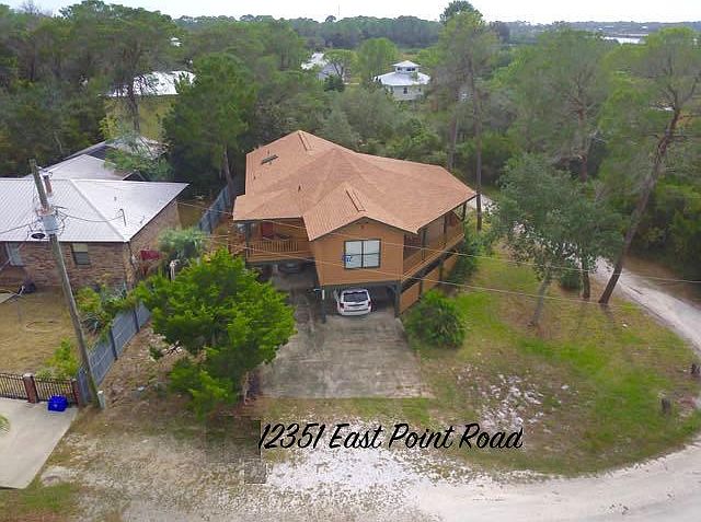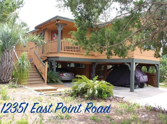 Entertain friends in spacious HIGH & DRY 2-bedroom, 2-bath hideaway ON THE HILL with downstairs workshop/garden room. PRIVATE ROAD with half a dozen other homes, SCENIC WATER/SAWGRASS VIEW with lots of birdlife for bird watchers, photographers, artists, writers. Hexagonal great room rises into apex of roof. A bedroom and bath on each side of the great room with walk-in closets and new windows. 14 x 40-Foot deck has French doors into both bedrooms and the great room. All except south side exterior is CEDAR T-111. New roof in 2016. The house is elevated with parking and workshop underneath. Make this your full-time home or rent it out. It has been both a full-time home and a popular short-term winter and summer rental in the past.