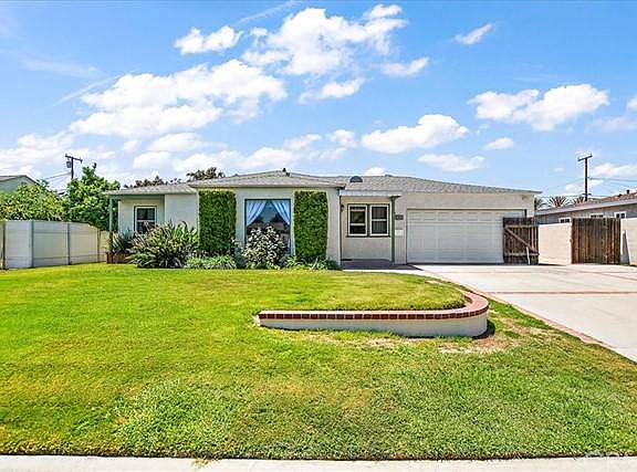 Welcome to 12351 Walnut Ave. This Charming Home rests within the Picturesque Community of Garden Grove. Step inside the 3 Bedroom, 2 Bath Home and youll immediately see many highlights of the home including an Open Floor Plan with Hardwood Floors in the Living Room and front Two Bedrooms. Newer Kitchen with Stainless Steel Appliances and Vinyl Wood Flooring overlooking the Grand Family Room with Vaulted Ceilings and Wood/Gas Fireplace. The Primary Bedroom Suite boasts a Walk in Closet, Spa like Bathroom with Dual Sinks, Jacuzzi Tub and Separate Shower. Also Dual Pane Windows, Recessed Lighting, Copper Plumbing, A/C, Forced Air Heating. The Secluded Backyard with Koi Pond, Fruit Trees and Private Sitting Area, gives you a peaceful place to relax. Other Features Include a Storage Shed, RV Parking and Two Car Garage. Wont Last Long!