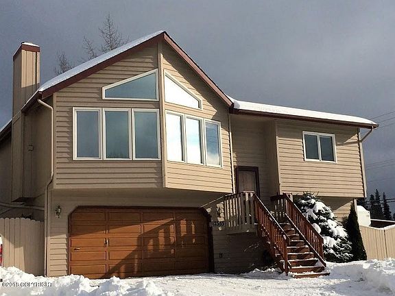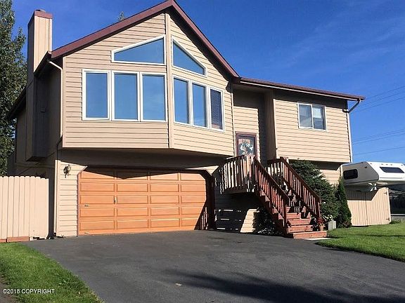 Move in Ready! Beautiful 3 bedroom 2 bath home located in South Anchorage w/ a 40 foot RV/boat storage. The main level features the master & second bedroom & a large bathroom with a skylight and jetted tub. Also on the main level is the living room with fireplace and Peek A Boo views of the inlet and flattop mountain. The eat-in kitchen includes updated stainless-steel appliances, built in sink and Corian counter tops. The ground floor has a large bonus room, third bedroom and second bathroom. The bonus room is a great space for out of town guests or an older child. The bonus room leads into the fenced in backyard with a large 400 square foot entertainment deck and shed/workshop with power. The 2 car garage offers great winter parking. With the purchase of this home, All major appliances will convey and a one year HOME Warranty.
