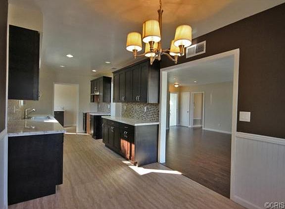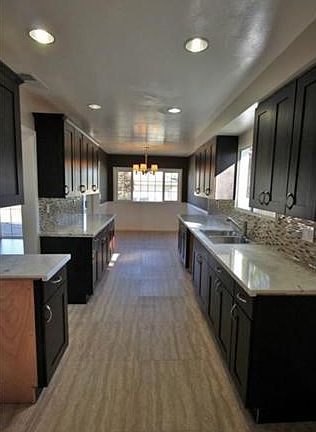 Beautifully remodeled 3bed/2bath home. This house features a striking front elevation, with a newly paved driveway, large backyard, and designer features. Entire home has been tastefully updated by a designer, with custom paint, new flooring, refinished baths, and many decorator finishes. Kitchen features brand new tiling, marble counter tops, custom mosaic back-splash, and new cabinetry, with designer hardware. Floor plan includes large, open kitchen, interior laundry room, three bedrooms, including a spacious master bedroom with private en suite bath. Additional features include a brand new plumbing system, brand new garage door, central AC/heat, dual paned, energy efficient windows, recessed lighting, new base molding, front/back yard landscaping and automatic irrigation. Home is centrally located, near schools and shopping, with convenient freeway access.