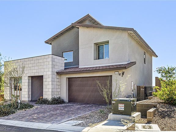 Experience luxury living in the prestigious and highly sought after Gray cliff community of West Summerlin. This Lennar-built home is a true entertainer’s dream, featuring a custom heated saltwater pool, firepit, and patio—all perfectly positioned to capture Las Vegas's breathtaking sunrises and sunsets. Inside, you’ll find an open-concept layout with chef’ s kitchen, quartz island, walk in pantry and designer finishes throughout. A convenient downstairs bedroom while upstairs 2 additional bedrooms, a spacious loft and master bedroom with private balcony. A The tandem two car garage includes a 220V electric car outlet plus solar for energy efficiency.
