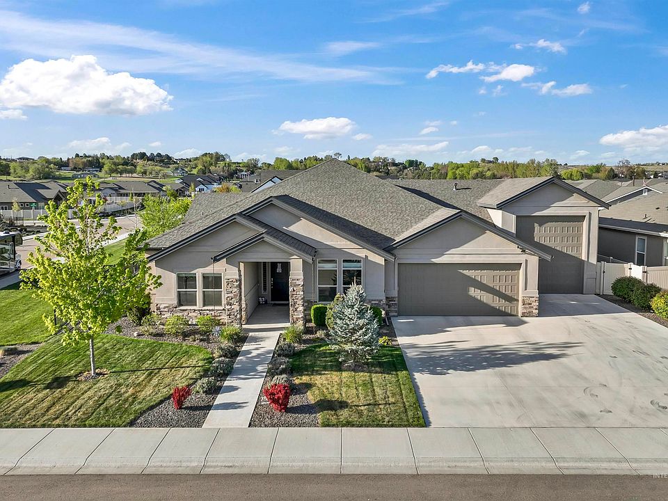 Stunning custom built home located in The Lakes at Pristine Springs. Features welcoming living area with gas fireplace and large kitchen with built in stove, double oven, under counter microwave oven. Beautiful granite counter tops throughout, custom blinds, jack and jill bathroom design for comfort living. Large master suite, heated master bathroom floor, walk-in shower plus an upgraded stand alone bathtub. Plumbed for central vacuum, mud sink in the laundry room. Rare 6 car garage, able to keep most, if not, all of your toys safe and secure from outside elements. Huge covered patio. Beautiful landscaping, no direct backyard neighbor, separates by the common area. Walking distance to community pool, lakes. Nice and quiet neighborhood.