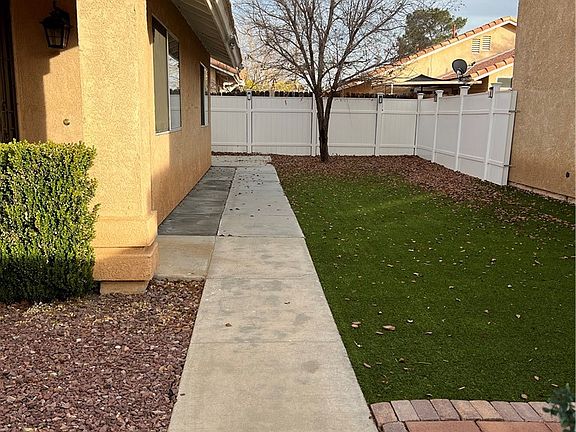 A cozy two bedroom, two bath fairly new renovated home. Home has many upgrades such as flooring, light fixtures, bathroom, water heater, updated electrical outlets and electrical box, turf in the front and backyard, vinyl fencing, dual zebra shades and ceiling fans. Kitchen has two smart outlets and includes an updated garbage disposal and refrigerator is included. Bathrooms have been updated with vanity toilets, bluetooth speakers and shower heads. Rooms include closet organizers. Automatic front door lock. Removal of outdated popcorn ceiling and newer concrete slabs. House is walking distance to Mojave Vista Elementary school and super markets. Lovely family oriented community for you to enjoy.