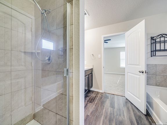 This well-maintained home is located near Randolph AFB, IH 35, and Loop 1604, and offers a convenient and desirable location for both work and play. It has a spacious, open floor plan, perfect for work and play. The community is family-friendly with a playground and elementary and junior high schools around the corner. The primary suite is located downstairs for added privacy. , The kitchen has a gas cooking range and beautiful granite countertops. Upstairs are 4 additional bedrooms that lead into a generously sized game room. Additional amenities include a full sprinkler system, gutters, water softener, and an automatic garage door opener for added convenience.