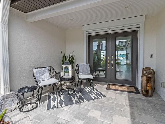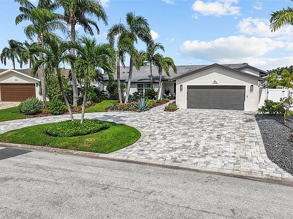 LIVE ABOVE IT ALL – ELEVATED WATERFRONT LUXURY! This 4 bedroom 3.5 bath home with EXTENSIVE HIGH-END UPGRADES sits on a HIGH LOT WITH NO FLOOD WATER INTRUSION TO THE HOME OR GARAGE (updates completed prior to Hurricane Helene). Walls of hurricane impact glass frame sweeping open Intracoastal views beneath soaring cathedral ceilings, with new hurricane shutters adding storm protection and helping keep the home cool while you travel. The chef’s kitchen offers Wolf and Bosch appliances, quartzite counters, wine storage, hidden walk-in pantry, and natural gas cooking. Dual waterfront suites include spa baths, custom closets, and direct access to the saltwater pool and spa. Updates feature a new high seawall, HVAC, tankless water heater with recirculating pump, reverse osmosis system, plumbing upgrades, full-house generator, newly paved driveway, and natural gas service. Outdoor living includes a summer kitchen, fire pit, rain-curtain pool entry, lush landscaping, and composite dock. This DEEP WATER LOT PROVIDES 83 FEET ON THE WATER WITH A 13,000 LB BOAT LIFT, KAYAK AND PADDLEBOARD LAUNCH, AND PLENTY OF SPACE FOR ADDITIONAL WATERFRONT TOYS. Situated in one of the most coveted waterfront communities in Pinellas County, just one mile from the beach, restaurants, entertainment and more. You will feel right at home in this friendly community of Yacht Club Estates.