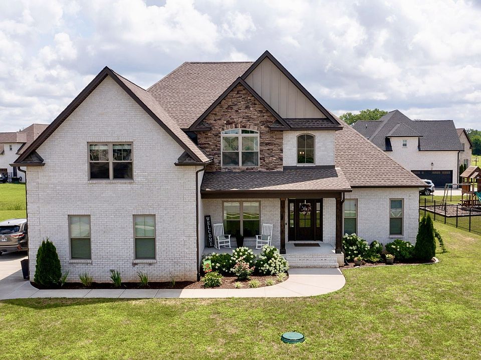 Welcome to this beautifully upgraded move-in ready home in Christiana, TN, located less than 5 minutes from the Murfreesboro city limits and just 10 minutes from major shopping, dining, and entertainment with easy interstate access for commuters. This light-filled home blends comfort, space, and modern design in one perfect package. The bright, open floor plan is filled with natural light and designed for everyday living and entertaining. Enjoy peaceful mornings on the charming front porch and cozy evenings by the backyard fire pit. The outdoor living space truly stands out, featuring three distinct areas: a screened-in patio, open-air patio, and private fire pit retreat, plus a side garden with vegetables and fruit bushes already planted. Inside, the open-concept layout showcases beautiful wood flooring, soaring ceilings, and abundant windows that create a warm, inviting feel. The upgraded kitchen features granite countertops, built-in stainless appliances, and a spacious walk-in pantry with custom shelving. The large eat-in kitchen opens to a second gathering room with a gas fireplace, perfect for entertaining family and friends. The main-level primary suite is a private retreat with a flexible sitting or office area and private access to the screened porch. The luxurious en-suite bath offers a double vanity, soaking tub, tiled shower, and a walk-in closet with extensive built-ins. A secondary bedroom, full bath, and laundry room are also on the main floor. Upstairs are two additional bedrooms, each with walk-in closets, a large bonus room, extra storage, and a spacious full bath with double vanities. A walk-in attic with a full-size door provides easy storage access. With its thoughtful upgrades, multiple gathering spaces, and an ideal location near Murfreesboro, this beautiful home in Christiana offers the perfect blend of comfort, convenience, and style. Schedule your private tour today!
