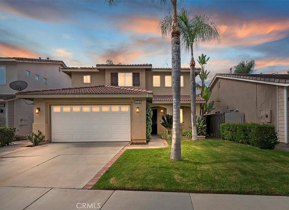 Welcome to this charming single family home nestled in a quiet gated community of Ashwood in South Corona. Boasting a flexible floor plan and desirable features, this residence balances comfort and style. With a blend of indoor and outdoor living spaces, this home is ideal for both entertaining and everyday living. Features include 4 bedrooms and 3 baths with one of the bedrooms and baths downstairs. Highlights include high vaulted ceilings upon entry with a very open-concept layout connecting the living, dining and kitchen areas - a fireplace in the family room adds warmth and ambiance. Central cooling and heating provide year round comfort. The rear yard offers much privacy with mature palm trees, a calming waterfall coming off the slope, and a private above ground spa to soak in and enjoy that glass of wine at the end of a long day. Situated in the 92881 zip code, this home in a well established location of South Corona, literally within 2 blocks of Santiago High School and Orange Elementary School - also close to shops, entertainment and nearby to both the Crossings and Dos Lagos. Hurry on this one as it may not last.
