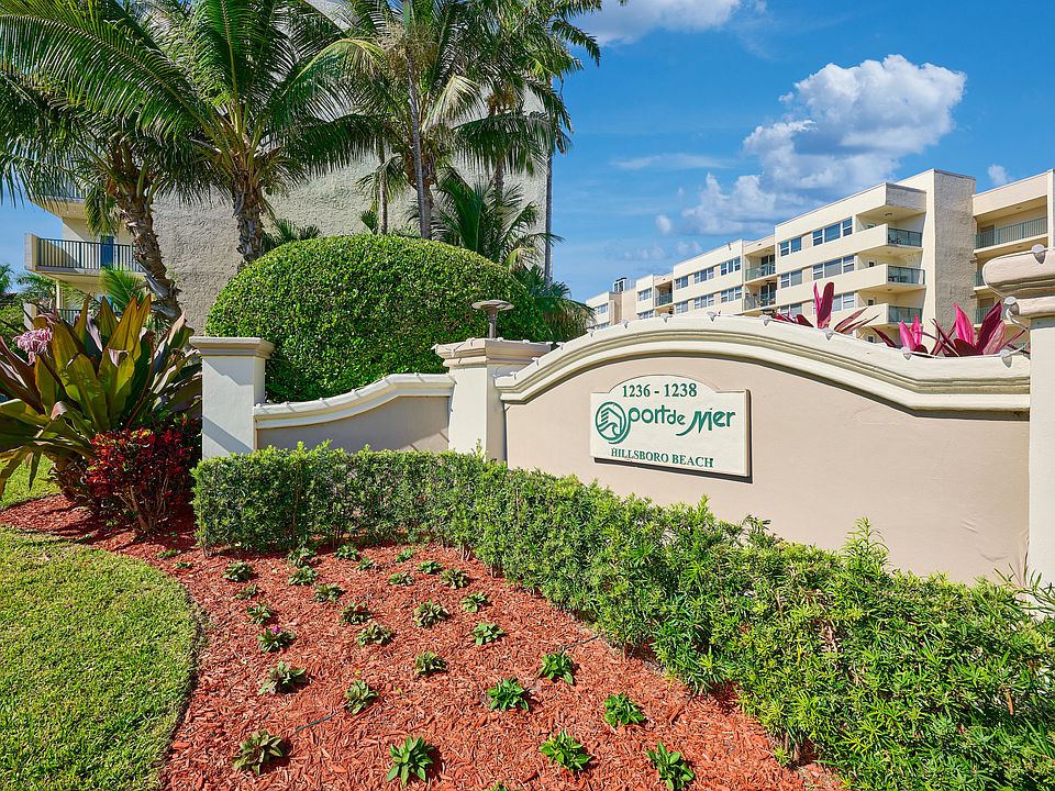 Looking for a beach hideaway in a location that cannot be beat? This is it! Enjoy the beach lifestyle from this 2Br/2 bath first floor unit in the upscale Port De Mer development, in beautiful Hillsboro Beach. The complex is just over the Deerfield Beach line and you can literally walk into Deerfield Beach to enjoy restaurants, shops, Deerfield Beach International Fishing Pier and so much more. Enjoy either the Intracoastal side pool or the ocean side pool, both a short walk. The unit itself is conveniently located right off the lobby. No elevator to deal with. It has a large convertible bedroom that the owner was using as living space, with its own bathroom and a second bedroom with its own bath also. Both baths have been totally renovated. The kitchen has also been updated. This great unit has all high impact windows and sliders for your peace of mind and safety. The patio overlooks a beautiful garden area with a glimpse of the Intracoastal to the west. Come and enjoy all that Port De Mer has to offer.