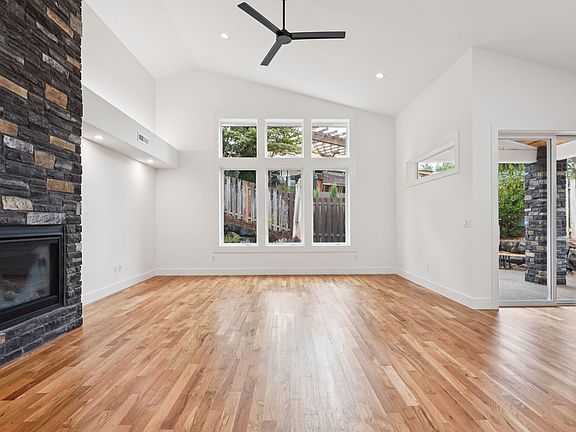 This impeccably designed one level residence has vaulted ceilings, hardwoods throughout and lots of natural light! The home features a living room with a gas fireplace and, slider to custom covered patio, dining room with built-ins, kitchen has high quality custom walnut cabinets with pull outs, top end stainless appliances including dual fuel gas range, refrigerator and dishwasher. The spacious primary bedroom has large walk-in closet with custom built-ins and the primary bath features double sinks, soaking tub, walk-in tile shower and heated floor. Front yard is maintained by the HOA, back yard is low maintenance. Access to neighborhood pool. NO SMOKING, NO PETS.