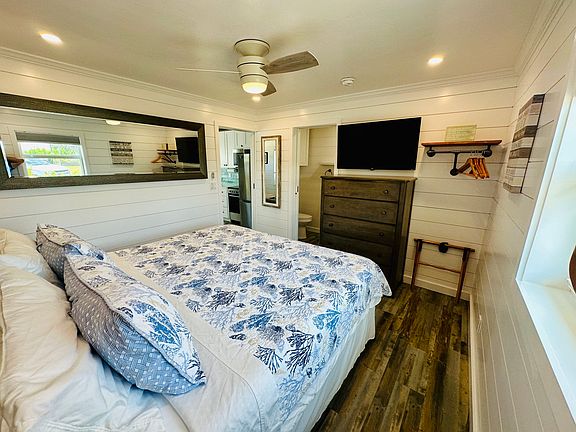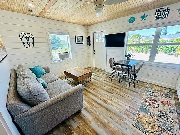 New kitchen with Quartz countertop, large sink and new cabinets. New stainless appliances- refrigerator, range and OTR microwave. Bedroom has a new king size Nectar mattress. Beautiful live edge black walnut table. Free laundry in building shared with only one other 1 br unit on the other side of the duplex. Open kitchen/living room floor plan. Minutes (3 miles north) of downtown/5th Ave dining and entertainment. Walkable (within 5 mins) to many cafes and bars. FREE on site dedicated parking for two (2) cars right at the front door. Hurricane impact windows and door. LED lighting with dimmers in every room. New 16'x10' private patio/deck just completed