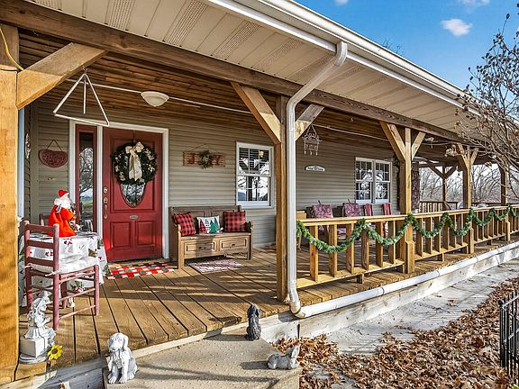 Welcome to P&D Farm, a stunning 24.47-acre country retreat just north of Fair Grove. A charming roadside honey stand greets you at the entrance, setting the tone for this one-of-a-kind property. A beautiful gated drive leads to a timeless country style home surrounded by nature. Relax on the wrap-around porch and take in peaceful sunsets while watching deer graze across your private acreage. Step inside where you'll find a cozy living area with rich hardwood floors, high ceilings and a wood-burning stove with an impressive mantle. The spacious dining area is perfect for gatherings, while the bright country kitchen features white cabinetry, tile backsplash, a center island, and breakfast bar overlooking the East side of the property. The primary suite offers crown molding, a sitting area, and a private bath, the ideal retreat after a long day. An office, half bath, and well-appointed utility room with sink and cabinetry complete the main level. Upstairs, two oversized bedrooms provide flexibility for guests, hobby rooms, or additional living space.The basement adds even more versatility featuring a secondary kitchen, large game or family room, and a custom wine cellar with a handcrafted door and wood plank ceiling. Out back, the covered porch extends to a spa room for year-round relaxation and covered parking. The 1,200 sq-ft detached shop with 220-amp service and concrete floors, currently supports the home business but easily doubles as a hobbyist or agricultural workspace. A year-round greenhouse, gazebo overlooking the pond, and multiple sitting areas make the outdoor space just as inviting as the home itself. The current owners are offering the profitable honey farm business separately to interested buyers to fully take advantage of peaceful living paired with an income producing business venture.