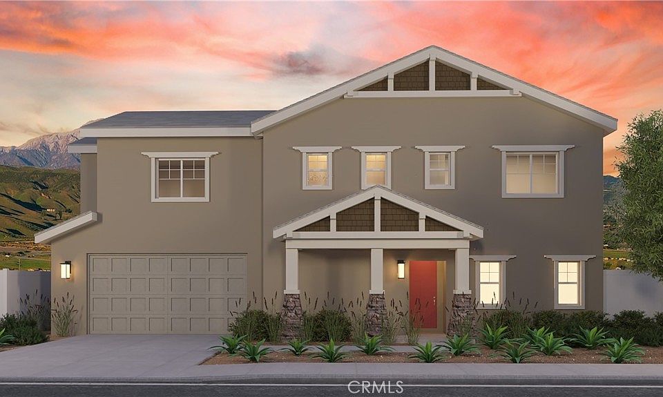 New Home Construction. Pack your bags, Move-In new home in 30 Days.  SOLAR IS PAID FOR, $12,000 FINANCING INCENTIVE IF you use Seller's preferred lender. Purchase in Phase 4 at the Community of Artisan, located in the breathtaking city of Yucaipa, known as the “Jewel of the Inland Empire” and visually framed by the breathtaking San Bernardino Mountains. Great Open Floor Plan with 3 Bd plus Loft, 2.5 Bath and 2 car garage, this single-family home boasts a Craftsman exterior & includes RevWood flooring on the entire first floor. Large kitchen island including seating bar. Walk-In Pantry. Alto (light grey) shaker style, maple cabinets throughout home, Quartz kitchen countertops with custom subway tile full backsplash, Stainless steel LG appliance package with free standing gas range, 5 burners and built -in Air Fryer, microwave and dishwasher and single basin stainless steel sink. Primary Suite with walk in closet, lush carpet, 36" high custom designed Alto (light grey) cabinets with upgraded eStone Celeste counter tops, dual sinks with Peerless single lever chrome faucets, and oversized vanity mirror and tiled floors. Whole house Wi-Fi pre-wire, upstairs Laundry Room, Voluminous 9' ceilings throughout, superior Milgard Windows, Drop Zone with USB charging station. Finished 2-car garage with steel roll up garage door and Wi-Fi garage door opener, Electric vehicle prewire in garage, RING doorbell, larger homesite with rear and side yard vinyl fencing. Corner location on Cul-de-sac and almost across the street from sizeable community park with picnic areas, benches & BBQ, a cornhole court, turf area for open play, & tot lot. Professionally landscaped community with included water efficient front yard landscaping with automatic sprinklers. Wi-Fi programmable thermostat & Tankless Water Heater. Minutes to 10 Freeway, close to schools, shopping, churches, Crafton Hills College and Yucaipa Regional Park. Yucaipa is adjacent to the many wonders of Oak Glen; including apple orchards & museums. 15 minutes to Loma Linda University Hospital. Photographs of interior are model home (actual property will have same cabinets) and exterior rendering is what this home looks like!
