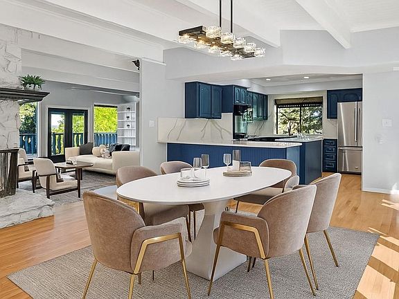 Newly updated open kitchen with wood flooring & quartz counters, flows into the living area and out to the backyard. Main level also features 2 bedrooms—each with access to the backyard oasis—and a ¾ bath with a sunken shower.