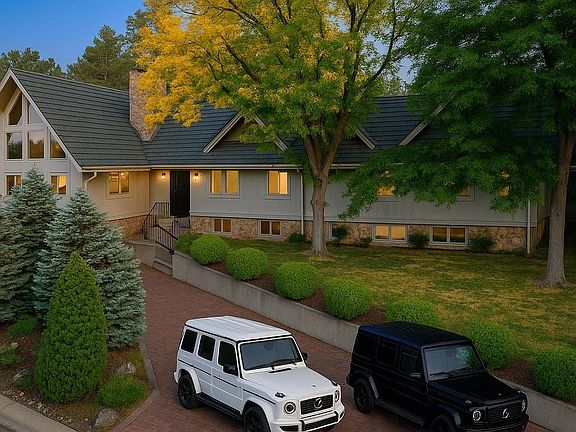 Inspired by a Vail Village chalet, this unforgettable Applewood home offers style, craftsmanship, and mountain-inspired design just minutes from downtown. Tucked away on a quiet cul-de-sac at one of the neighborhood’s highest elevations, this home has sweeping views of Table Mountain and beyond. Brick driveway & striking entry doors set the tone for the character within. Vaulted wood-plank ceilings, skylights, & 3 fireplaces create warmth, while walls of windows fill the home with light. Glass doors open to a front deck with incredible views, ideal for taking in Colorado’s signature sunsets.