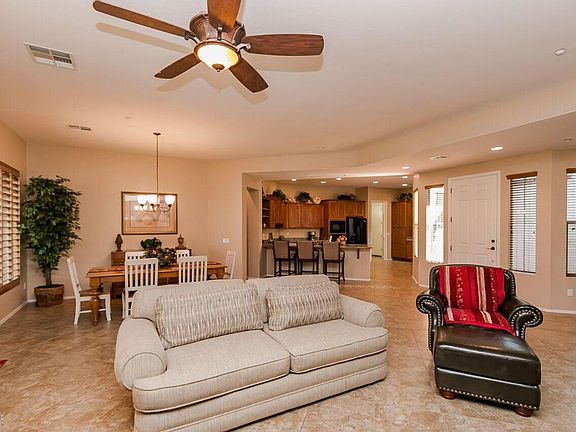 Super Trilogy Opportunity & Value. Great Home + A Hop, Skip, & Jump to Beautiful Kiva Club & Back Gate. Popular Civitas Plan Offers A Wonderful Great Room Plan & Is Adjacent To A Spacious Eat In Kitchen. Master Split Away From Guest Bedroom Plus a Separate Den w/ French Doors / Built In Desk / & Bookshelves. Fabulous Extended Covered Patio w/ Ceiling Fans & Three Entrances To Home. Enjoy A Generous Use Of Brick Paver Patios, Built in BBQ Area, Rock Waterfall Feature, + Mature Landscaping For Added Privacy. Abundance Of Cabinetry, Butlers Pantry, Granite Slab Counter Tops, Large Diagonally Laid Tile Flooring, Plantation Shutters T/Out, Tuscany Elevation w/ Enclosed Front Courtyard, Recent Paint and More. Ready For Immediate Occupancy Too !