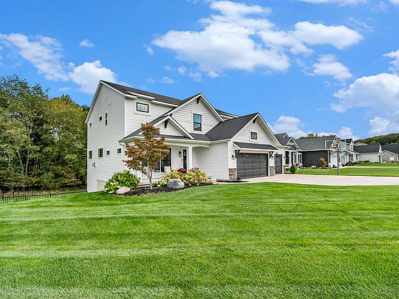 The perfect opportunity to own (like) new construction without all the headaches of building! This nearly new home in Lowell sits on a premium home site in Harvest Meadows backing up to the woods. With modern Farmhouse flair, this 4-bedroom 3.5 bath home offers an open floor plan perfect for large gatherings or warm cozy nights by the fire. The light and airy kitchen features an oversized island, high-end appliances, and a walk-in pantry. Large windows welcome streams of light in the sunroom. The main floor also includes an office, mudroom, and half bath. The laundry room is smartly located on the second floor as well as the spacious primary ensuite, 3 more bedrooms, and a full bath. The walkout lower level is finished. Located near downtown Lowell and Ada and 20 minutes to downtown GR.