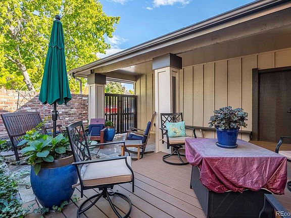 Wonderfully updated two story home located in a fantastic community! Before you enter the home, you are greeted with a front patio courtyard oasis that has been completely remodeled with new tile and trex deck! Providing a perfect spot for entertaining or just enjoying the great Colorado weather. Step in through the brand new front doors to the vaulted living room with an abundance of windows providing plenty of natural light, newer flooring and brand new gas fireplace with wood mantle. The living room opens and flows into the separate dining area and leads into the kitchen with eat-in space, granite counters, white cabinets, backsplash and all Stainless Steel appliances included! The open floor plan concept brings you to the cozy family room that is perfect for additional entertaining space. The main floor bedroom with glass French Doors gives you access to the three-quarter bathroom and is also perfect for an office setup if needed! The upstairs has newer carpet throughout, an updated full bathroom with tile floors and three good sized bedrooms including the primary bedroom with vaulted ceilings, floor to ceiling windows, walk-in closet and private bath with dual sinks and walk-in shower. The updates continue with a newer water heater, upgraded window coverings, newer ceiling fans, refinished garage floor and new extended driveway. Take the entertaining outside to the patio with pergola and your very own race track! The backyard offers brand new fencing, low maintenance plants and brand new trees. Couple ALL this home has to offer while being located in a very active HOA that provides you access to the Clubhouse, Pools, Tennis Courts and holds holiday events and community garage sales. Amazing location close to parks, restaratunts, shopping, walking distance to schools, light rale and easy access to all major routes for convenient commuting. Don't miss out on all this home has to offer while being perfectly located!