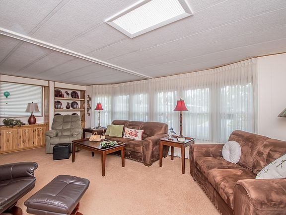 Meticulously maintained GOLF COURSE HOME ON THE #8 TEE BOX in High Point 55+ Community where you OWN YOUR OWN LAND. This SPACIOUS 1344 square foot home features a LARGE ISLAND KITCHEN, an INSULATED 4-SEASON FLORIDA ROOM, LARGE FRONT PORCH, double pane windows, a wet bar, and much more. The master bathroom has a GARDEN TUB, SEPARATE SHOWER, DUAL VANITY, and WALK-IN CLOSET. Utility room with GOLF CART STORAGE. NEW RUBBER ROOF in 2013, NEW A/C 2010. Located in popular 55+ community where you OWN YOUR OWN LAND. Community amenities include tennis, heated pool, horseshoes, bocce, community center, pickle ball and more. Located near major medical facilities, shopping and restaurants.
