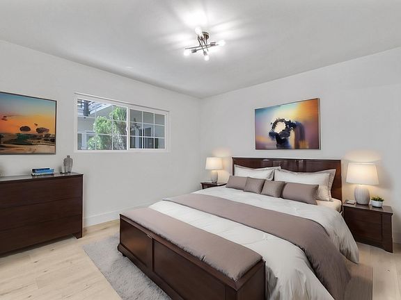Fresh new paintModern light fixtureStylish flooringQuartz countertopsPlenty of natural lightUpdated bathroomSpacious bedroom