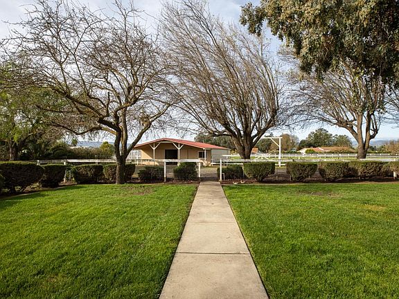 A rare opportunity to find a quality home with pride of ownership situated on 2 acres* This home offers this perfect canvas for your personal touches and updates* Expansive kitchen w/ oak custom cabinets, tile counters& backsplash with decorative border, island w/6-burner cooktop + breakfast bar, large eat-in space & adjoining step down living room w/wall to wall rock hearth ,wood burning fireplace * oversized formal dining room offers multi-use options* Generously-sized primary bedroom with walk-in closet & bath with stall shower + 2 sink vanity* 3 additional ample-sized bedrooms* Separate interior laundry room with utility sink & outside access door* Newer HVAC & water heater* Inviting backyard showcases a patio, large lawn area & lots of mature landscaping* Double-wide baserock driveway offers access to the back pasture ( approx. 1 acre) and barn with horse stalls, hay storage & extra rooms for personal hobbies and projects* Come experience the beauty and tranquility of country life in San Martin*