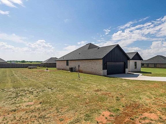 Beautiful new construction that is complete and ready for an owner! This approx. 2000 square foot home is located on 1/2 acre lot in Stone Ridge Addition. There are 4 bedrooms, 2 baths and 2 car garage. Open floorplan that has tile flooring in high traffic areas and carpet in the bedrooms. Total electric home with corner fireplace in the living area. Eat in kitchen has a large island with a breakfast bar, granite countertops, corner pantry and stainless appliances. Builder is offering $5000 to put towards buyers closing costs with accepted offer and a 1 year builders warranty. Give listing agent, Julie Bridges with RE/MAX Professionals a call at 580 695-3883 with any questions.