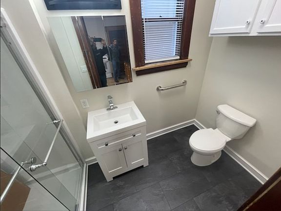 This is a great upper level, 2 bed 1 bathroom unit. Large mud room when you enter the home. Roomy living room that leads into a spacious din in kitchen with plenty of cabinets for storage. Cozy bedroom right off the living room. Oversized windows throughout to brin gin a lot of natural light. Updated flooring and bathroom, new shower, vanity and toilet.