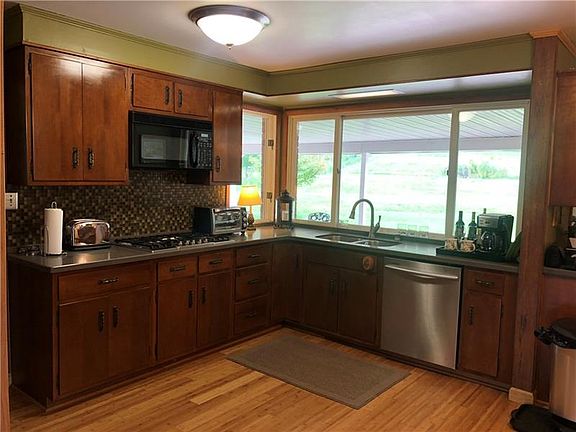 Lovely brick ranch in a great location with free gas! Just over five and a half acres located off of Parkwood Road. Home features new flooring throughout, bamboo floors in the kitchen and living room and a huge master bedroom. Two of the three bathrooms have been updated. Property also features a pond, small barn, storage shed and a separate out building that has plumbing, water, heat and electricity.