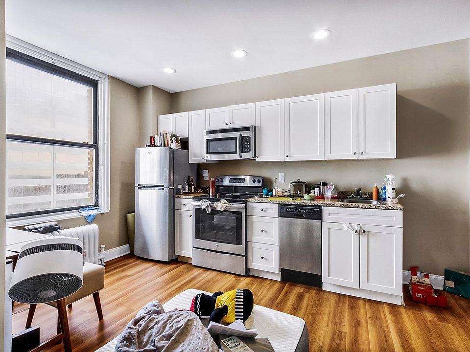 Excellent value in the heart of Center City! 24/7 doorman building in downtown Philadelphia- Enjoy being only a brief stroll away from bustling shopping districts, countless eateries and restaurants, exciting nightlife, and local cultural landmarks. Jefferson, Pennsylvania, Temple, Drexel, PENN, Wills-eye and other major medical facilities are all within a short walk or ride. Perfect 100 Walk Score! Perfect 100 Transit Score! Easily commute and enjoy the city's best attractions! - The building amenities include secured entrance, front desk attendant, fitness room, onsite management's offices, and laundry rooms on every floor. RECENTLY RENOVATED INTERIOR- KITCHEN WITH STAINLESS STEEL APPLIANCES, TILED BATHROOM, AND MORE. The apartments interior includes hardwood floors and high ceilings. Bright interiors. Kitchen with appliances. Tiled bathrooms with a tub. Central radiator heaters. Wired for cable and internet (Wi-Fi not included). - Showings by appointment only. Contact the listing agent for tour schedules and all inquiries. No pet dogs, please. Firm. Pet cats allowed with fees. 1 year lease minimum. Firm. Further details and lease terms: Model unit images. Video tours (when available) and floorplans can be shared upon request. 12 months lease term only. No short-term leasing options. No subletting permitted. $75 application fee. Only a $500 deposit. No last month's rent is required to move in. Rent includes- trash removal and amenities access. The tenant pays for electricity, heating, water, and internet. Pet cats are allowed with pet fees. No pet dogs, please. Shared (paid) laundry machines on every floor. No washer and dryer in the units. Applying and payments are done directly with the management. Application approval requires a good credit history or better, sufficient verified income, positive rental history. Cosigner applicants accepted. Nearby parking options- Public garages or lots offering monthly rates. No long-term street parking option in the immediate area around the building. *Although deemed accurate, the information listed in this ad can be changed at any time without prior notice. Please excuse mistypes and errors*