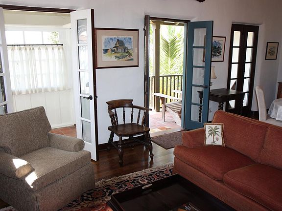 Pristine and elegantly furnished 2 bedroom, 2 bath house in a historically-significant 1927 Adobe. A bonus sunrooms is accessed off the living room. Cathedral ceiling in the living room. Master suite with private entrance opens onto a porch under the oaks. Large second bedroom with great natural light looking over the garden. Two full remodeled bathrooms. Open layout living / dinning with three French doors opening onto a porch. Bright, airy with a gentle ocean breeze. Fully equipped kitchen, with a new gas stove, for discerning cooks. A 400 ft long driveway assures privacy, tranquility and ample off-street parking. Few minutes from the Farmers market, shops and restaurants on State St., the Granada theater, Paseo Nuevo, the beach and harbor, the Funk Zone. Lease: Monthly or Long Term. Cleaning Fee: $120 Security Deposit to be determined based on the term of the lease. No Smoking . No PETS .
