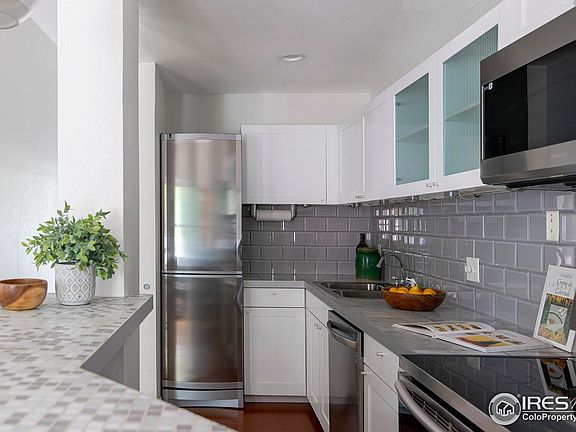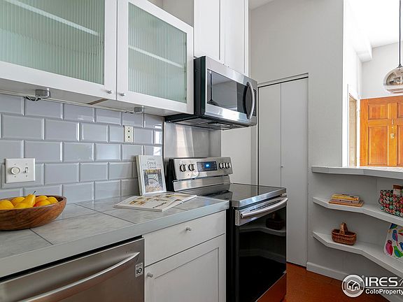 Excellent urban location and modern finishes meld with the character of an iconic building in this charming 2BR condo. The Historic Wolff house is perfect for an owner occupant or income property with unique 6' windows (and top-down blinds), 10' ceilings, sound mitigation, hardwood floors, wood stove, a private east-facing primary BR with walk-in closet, guest room or office, an updated kitchen and in-unit laundry. Lovely front porch with views, outdoor common area for gardening and gathering friends, one parking space, and a 5x7 storage area. Awesome location near the North Boulder Rec Center, Ideal Market, CU, the SKIP bus route, and Pearl St. Great HOA may be the most important feature with low fees and 80% owner occupied!