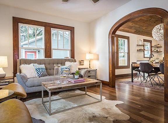Phenomenal home completely reinvented by Making Modern Home and ready for your East Austin lifestyle. This rare 1930 bungalow boasts much original wood trim & doors, walnut floors, designer finishes, honed granite, bar, exposed shiplap, and vaulted ceilings in the kitchen, dining, and master. A deck, charming front porch, zoysia, and peaceful fully fenced back yard offer a premium outdoor experience. New systems, foundation, roof, and windows. Walk-in closet in master. Surrounded by remodels/new builds.