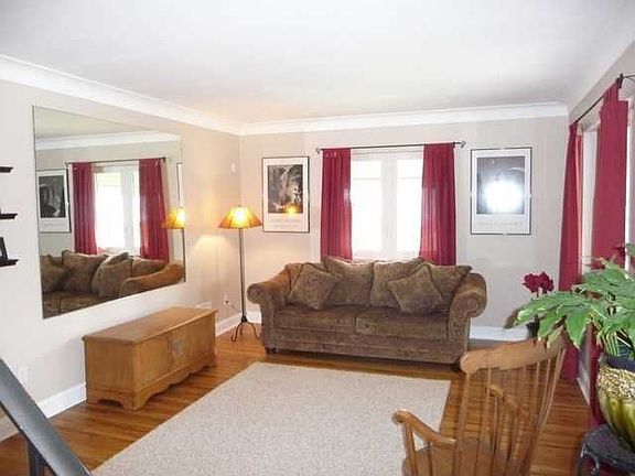 Delightful 1.5 Sty Brick hm w/spacious LvRm w/cove ceil & hrdwd, eat-in Kit w/ceramic flrs & bksplsh. Wonderful fin bsmt w/ gas fplc, bar, full bth, lndry & storage area. 2 bds dwn, mstr w/hdwd, 2nd bd w/new carpet & Dormer w/new carpet & finishing wrk. Lg Breezeway & 2 car. New privacy fence w/patio. Rf replaced by precious owner. Fresh paint makes this hm shine! Close to parks & shopping.