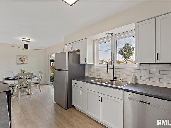 Renovated 3-bed, 1-bath ranch with a 2-car garage, ready for move-in! A large living room greets you with natural light from a huge front window. The kitchen features plenty of cabinetry, stainless steel appliances, & a stylish subway tile backsplash, opening to the dining area with sliding glass doors that lead to the deck & backyard. Down the hall are 3 comfortable bedrooms & a full bath. The finished basement adds even more space with a spacious rec room, a family room, & a storage area with built-in shelving. Outside, enjoy a flat yard with easy-to-maintain landscaping, a large deck, & a shed. The oversized garage includes attic storage & room for a future workbench. Updates include a newer roof & siding, fully finished basement, new kitchen, updated bathroom, & new flooring throughout. Don’t miss this beautifully renovated home—schedule a tour today! Seller is a REALTOR® Licensed in IA, IL & FL